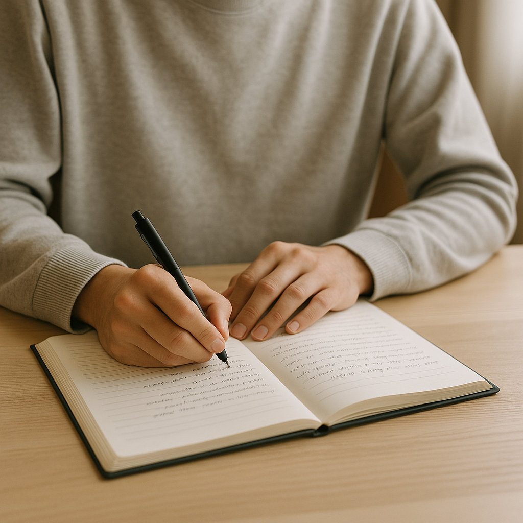 감정은 몸에 흔적을 남깁니다. 세 번째 단계에서는 감정과 함께 나타나는 신체 반응을 기록해봅니다. 예를 들어 화가 날 때 어깨가 경직되었는지, 불안할 때 심장이 빨리 뛰었는지 등입니다. “회의 중 손에 땀이 났다” 같은 문장은 자신의 감정 반응을 더 깊이 인식하게 해줍니다. 이 관찰은 몸과 감정의 연결을 이해하고 조절하는 데 효과적이며, 불안을 조기 감지하고 대응하는 데 도움을 줄 수 있습니다.